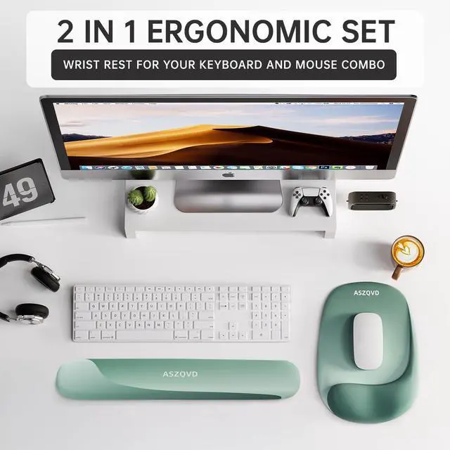 Aszqvd 2-in-1 Ergonomic Wrist Rest for Keyboard and Mouse