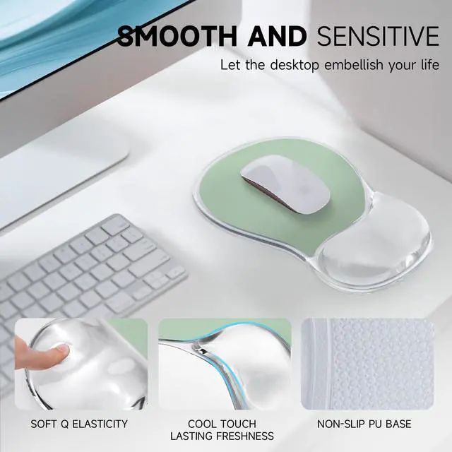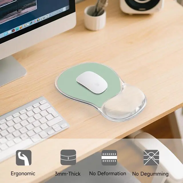 Ergonomic Gel Wrist Support Designed to align your wrist and reduce strain, this mouse pad features a memory gel cushion that adapts to your shape and offers long-term comfort.