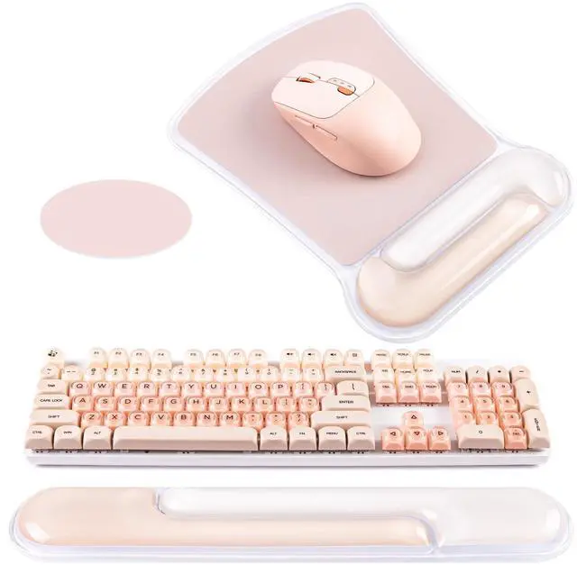Mouse Pad with Wrist Rest and Ergonomic Gel Keyboard Hand Wrist, Support for Typing Gaming, Relieve Wrist Pain, Cool & Easy to Clean, for Office, Programmer, Home Computer Use, Pink