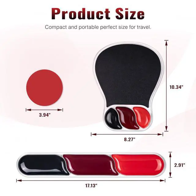 Mouse Pad with Wrist Rest Set Gel Ergonomic Keyboard Wrist Support Anti-Slip Rubber Bottom Office Women Desk Accessories for Computer, Laptop and Gaming, Black and Red
