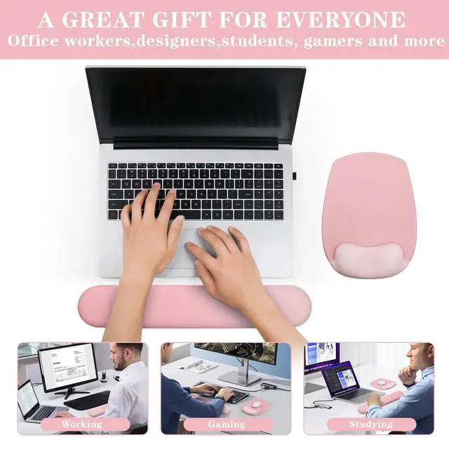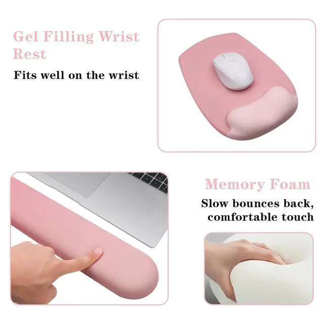 Wrist Rest for Keyboard and Mouse, Ergonomic Gel Computer Keyboard Wrist Rest with Memory Foam, Keyboard Wrist Support Pad for Long Hours of Work, Gaming, Studying-Relieve Wrist Pain (GD-Pink)