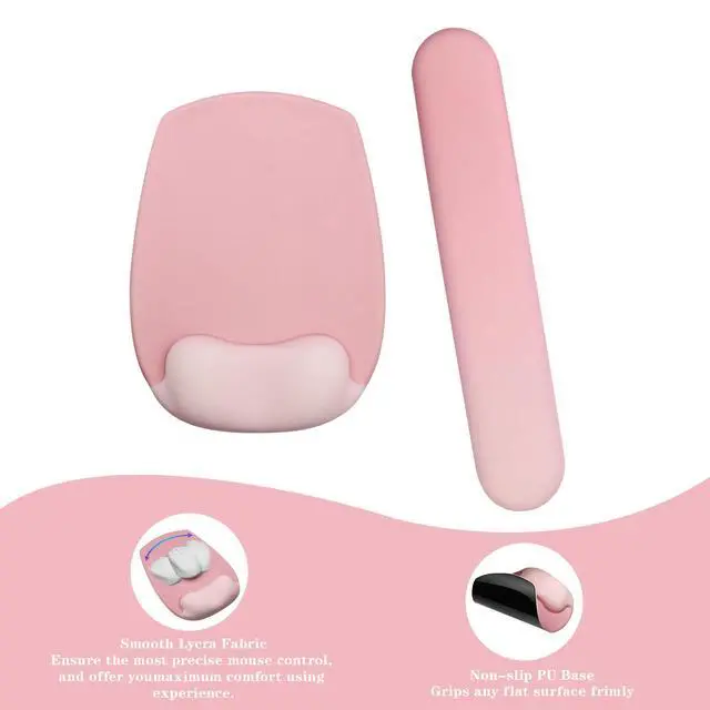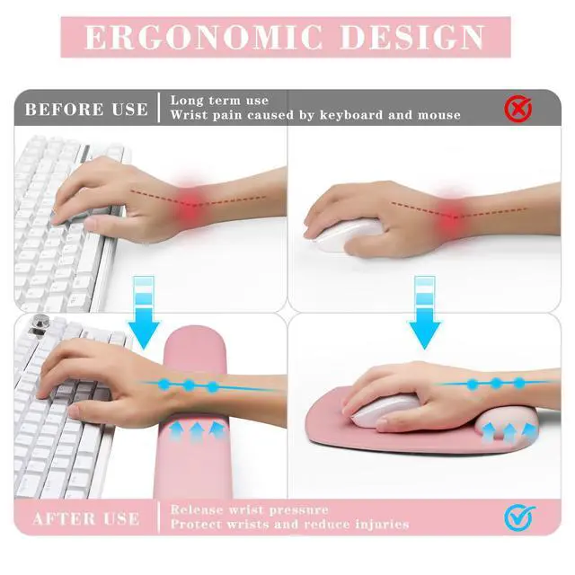 Super Non-Slip Base: The bottom of mouse wrist rest and wrist pad for keyboard adopts anti-skid natural rubber material. It can firmly grasp the desk to prevent sliding, enhancing comfort and focus during work or gaming without frequent adjustments.