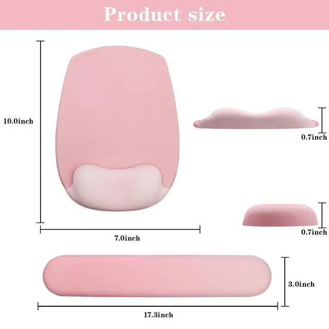 Dimension of Keyboard Wrist Rest: 17.3 x 3.1 inch, that of gel mousepad wrist support: 10.2 x 7.4 inch. keyboard wrist pad fits most computers or notebooks or mouse.