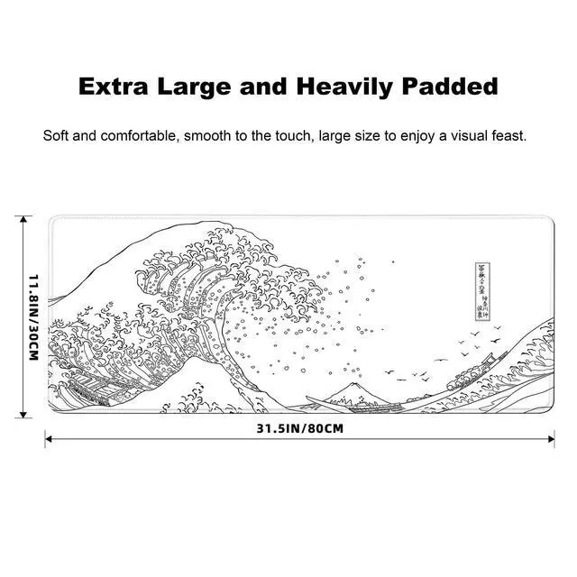 Gaming Mouse Pad for Desk,Large Mousepad Laptop,Black White Japanese Wave Anime Mouse Mat,Long XXL Waterproof Keyboard Pads,Big Non-Slip Computer Mousepads for Game Office Home31.5 x 11.9 in