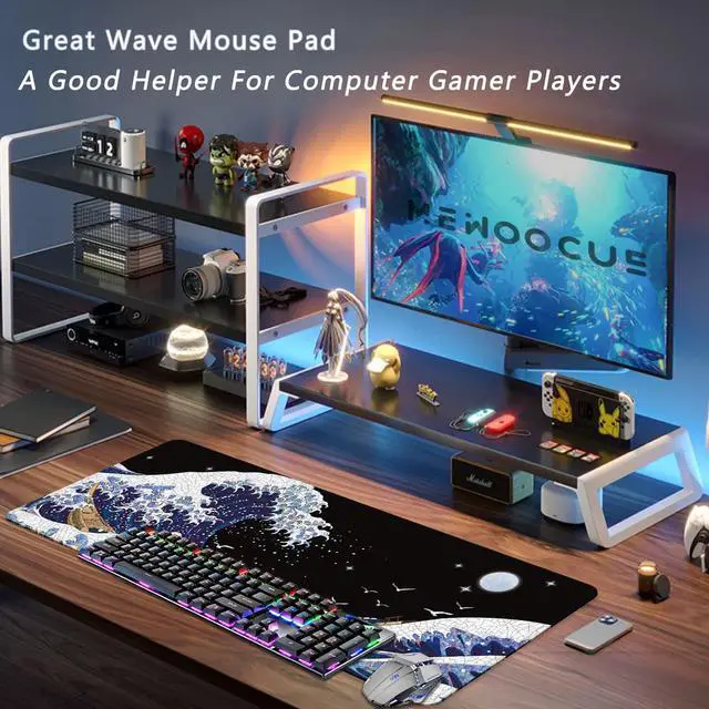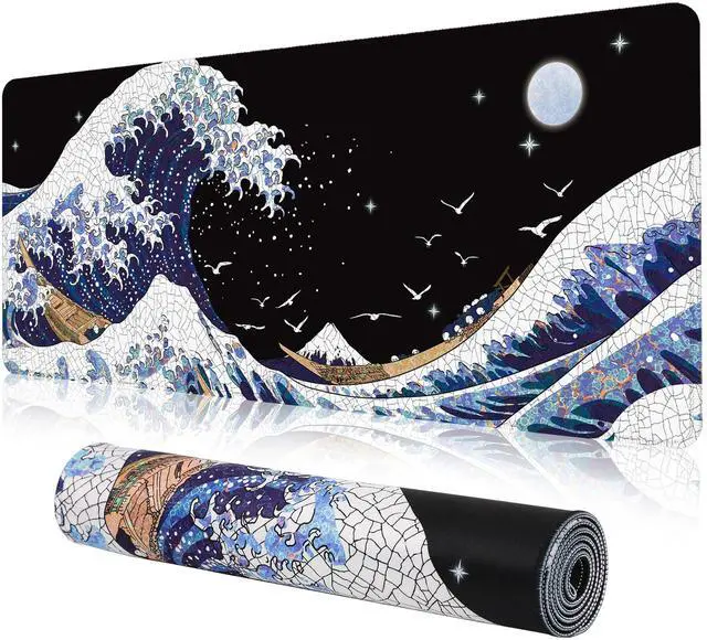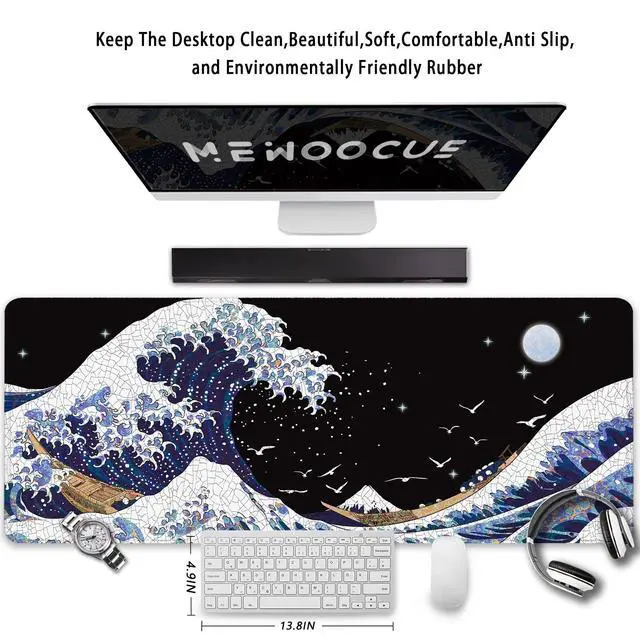 Featuring A Convenient Non-Slip Rubber Backing,Kanagawa Surfing Extended Mouse Pad Stays In Place While In Use, Keeping Your Mouse On Track To Avoid Annoyance