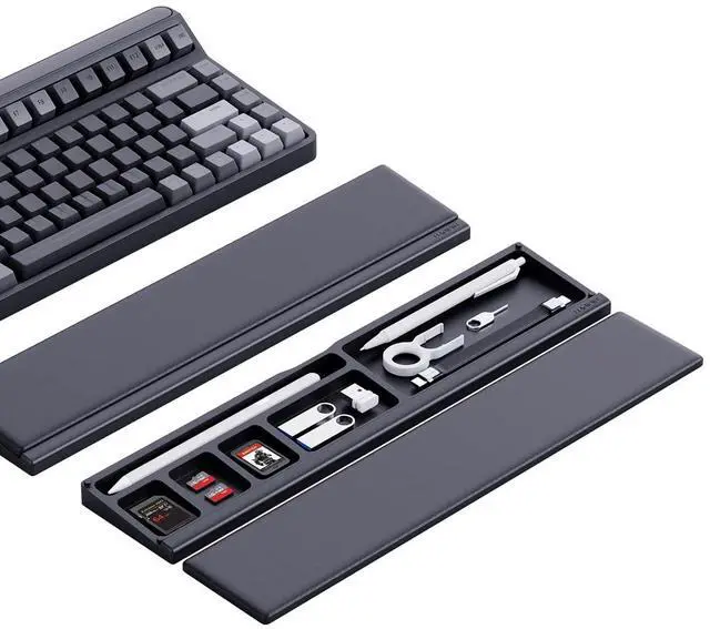 Keyboard Wrist Rest Pad Support with Desktop Partition Storage Case, Ergonomic Soft Memory Foam, Anti-Slip Rubber Base for Computer Keyboard, Laptop, Office, Home (Black)