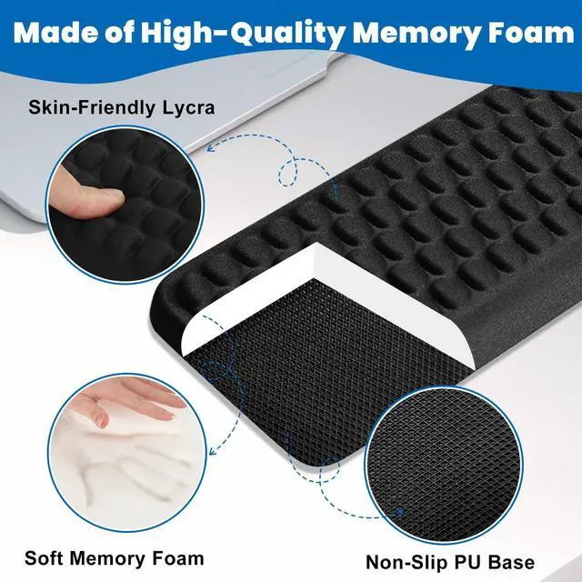- Made with soft, slow-rebound memory foam and a breathable Lycra surface, these pads keep your arms cool and cushioned. A non-slip rubber base ensures they stay in place no matter how fast you type or move your mouse.