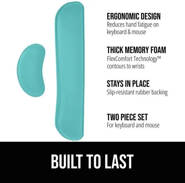 17 L x 3.5 W x 0.1 H inches, Memory foam, Memory Foam, Spandex, Set of 2 (Keyboard Rest + Mouse Rest), 2, 0.168 kilograms, Turquoise