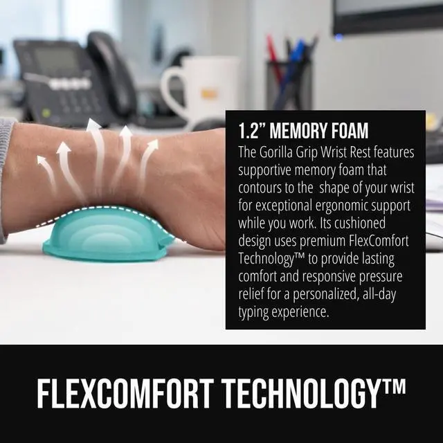 ULTRA THICK MEMORY FOAM: experience more comfort while you work; thickest memory foam interior of the wrist rest features an ergonomic, slow rebound for more comfort than ever; inner foam measures nearly 1.2 inches thick; youll never want to work without this rest ever again
