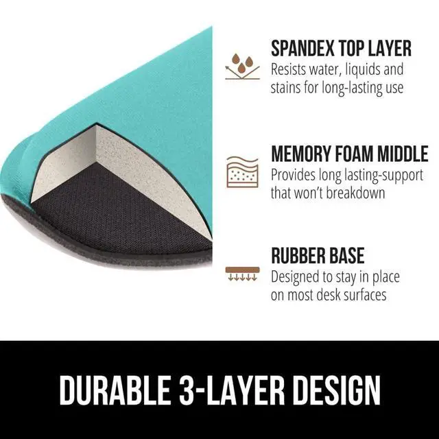 SUPERIOR CONSTRUCTION: featuring a 3 layer design, the rests are designed for long lasting use; durable rubber bottom stays in place on most surfaces; thick inner memory foam material for extra support; soft top spandex layer for additional comfort; wrist rest measures 17 by 3.5 inches, making it a perfect fit for most desks; mouse pad rest measures 6 by 3.3 inches