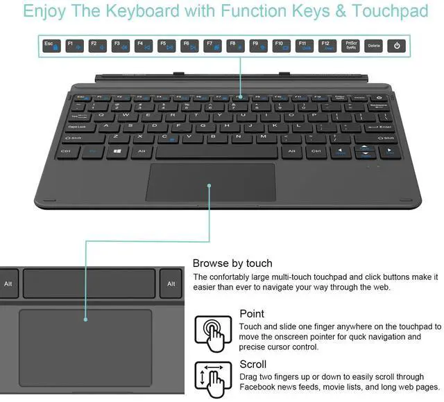 The extra-large touchpad allows you to navigate and control the cursor like a laptop, no need have to touch the screen or additional mouse.