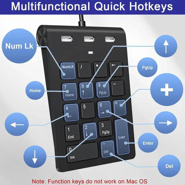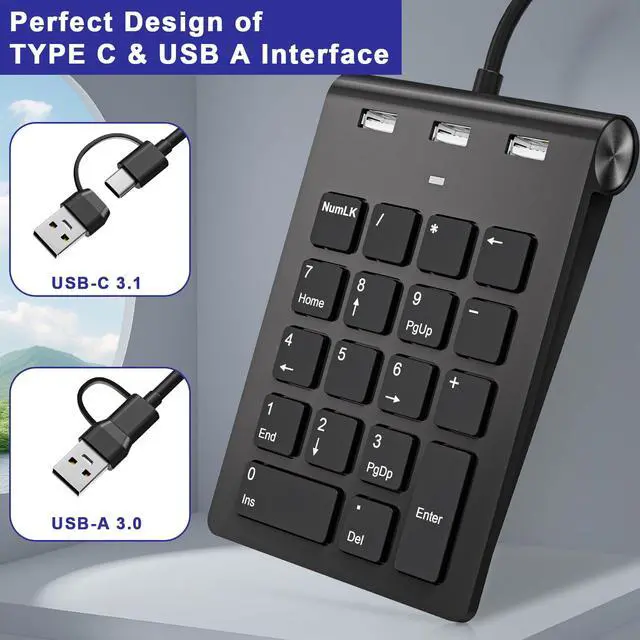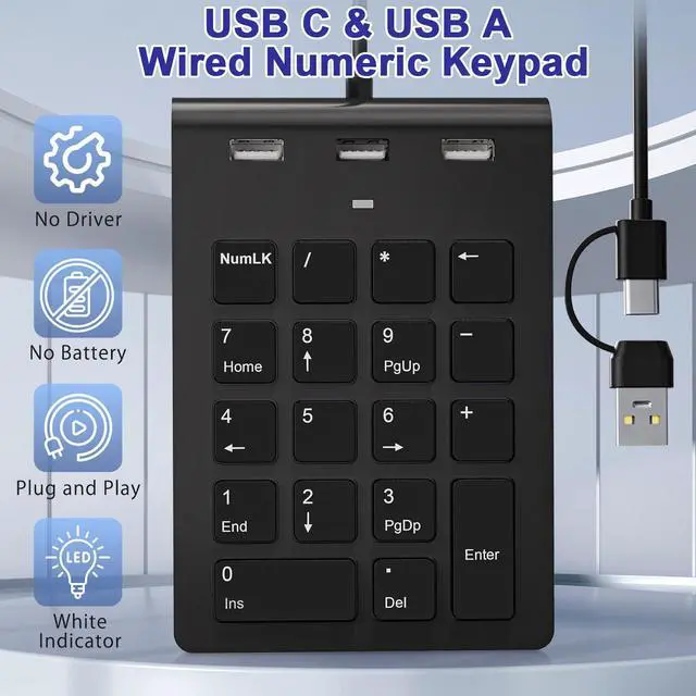 Wired Numeric Keypad, suitable for most laptops, desktops, and computers