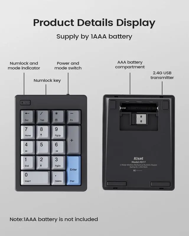 Kisnt Dual Mode Wireless Mechanical Number Pad