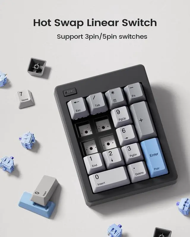 Kisnt’s mechanical 10-key is equipped with pre-lubed linear switches ensures a quieter and smoother typing experience.