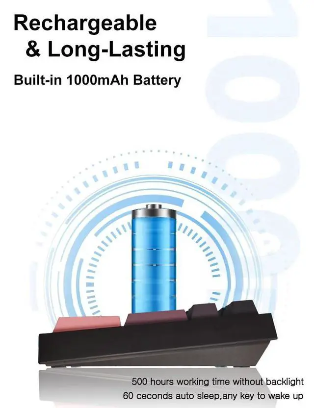 Rechargeable & Long-Lasting: With a high-capacity 1000mAh rechargeable battery, the number keypad can last up to 500 hours without backlight for one time charging. Power switch and auto sleep after 60 seconds for maximum power efficiency, press any key to wake up. The FN key blinks red to remind you of low battery.