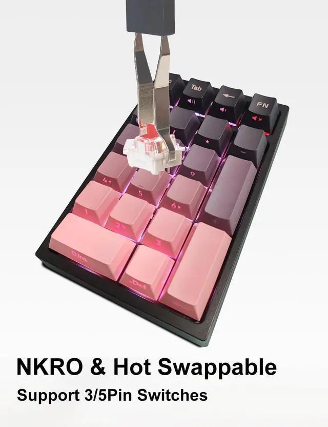 Tri-Mode Mechanical Numpad RGB Backlit Bluetooth 5.0/Wired USB-C/2.4G Wireless Macro Number Pad 21-Key NKRO Hot Swappable Numeric Keypad Rechargeable External Num Pad for Laptop, Mac (K21-BP)