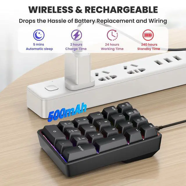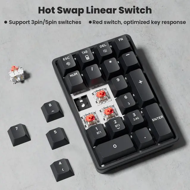 Number Pad Wireless 2.4G/Bluetooth 5.0/Wired USB-C 3 Mode Numeric Keypad,21Keys RGB Backlit Hot Swappable Numpad, Rechargeable Number keypad, Mechanical numberpad with PBT Keycap for PC/Laptop/Desktop
