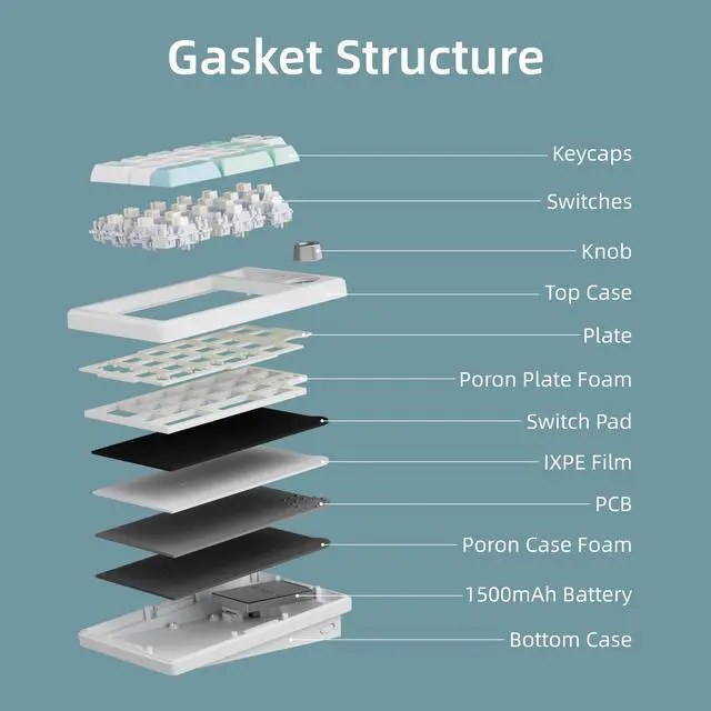 Gasket Mounted & Hot Swappable: Built with a refined gasket-mounted structure and layered sound-dampening materials, including EVA foam and IXPE pads, to reduce hollow noise and create a softer, more balanced keystroke feel. Fully hot-swappable sockets support both 3-pin and 5-pin mechanical switches. Pre-installed linear Phantom Lattice Switches deliver a smooth, creamy sound profile.