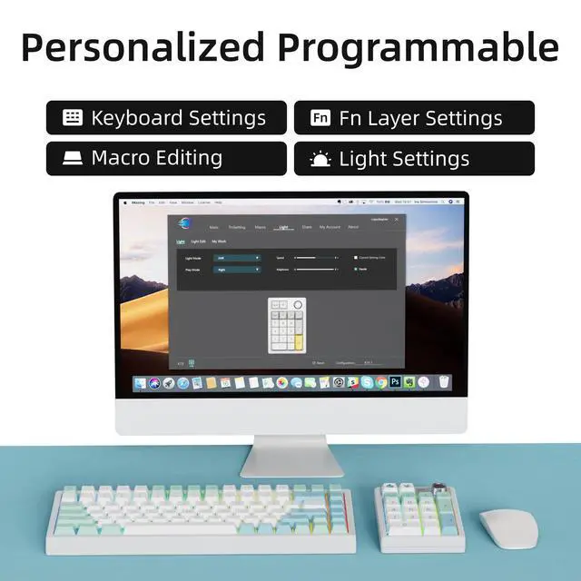 RGB Backlit & PBT Keycaps: Designed with customizable RGB backlighting featuring up to 18 lighting styles, including dynamic RGB and static color modes. Lighting effects and music-reactive modes can be adjusted through software. High-quality PBT keycaps resist fading, wear, and oil buildup, keeping legends crisp and the surface clean over time.