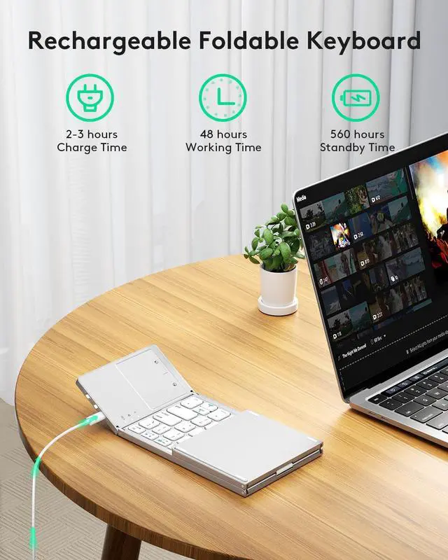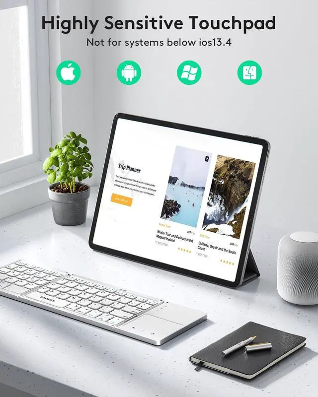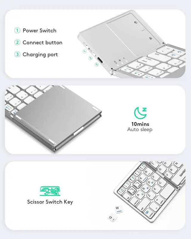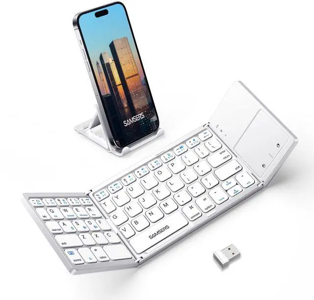 Samsers Dual-Mode Tri-Fold Portable Bluetooth Folding Keyboard with Sensitive Touchpad & Phone Stand Holder