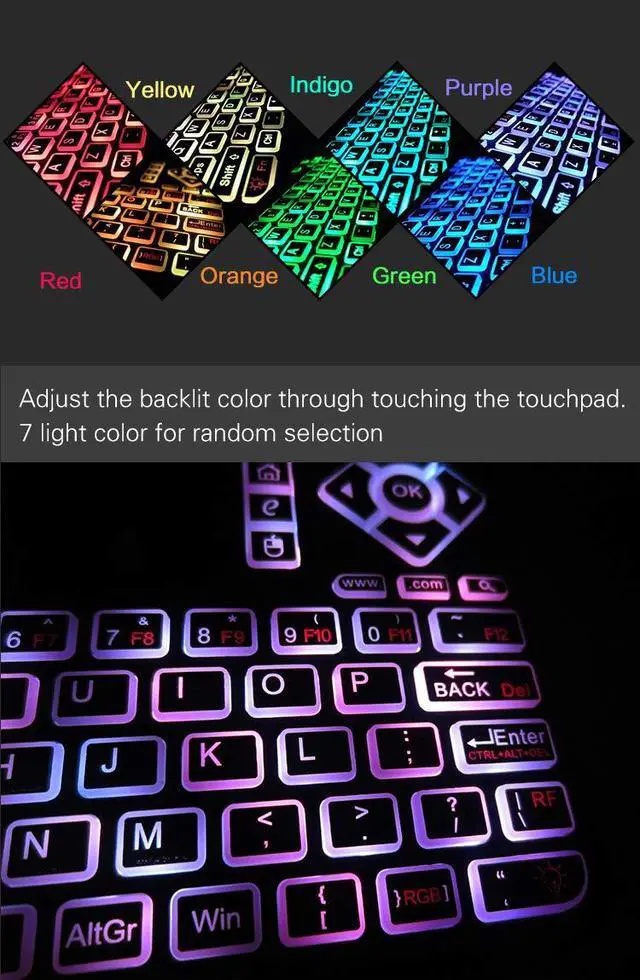3.New Colorful Backlit Version: Colorful Backlit including red, orange, yellow, green, blue, indigo, violets switch randomly, more convenient when lack of light.