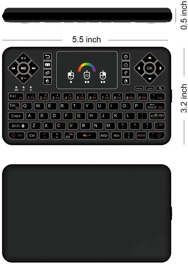 5.Ergonomically handheld design: Designed with Innovative shape, compact, light and fully featured, which can give you more comfortable feeling. Also we designed two separate keys at the top of the keyboard to replace the left and right mouse buttons to that android system users can use it in a convenient way.