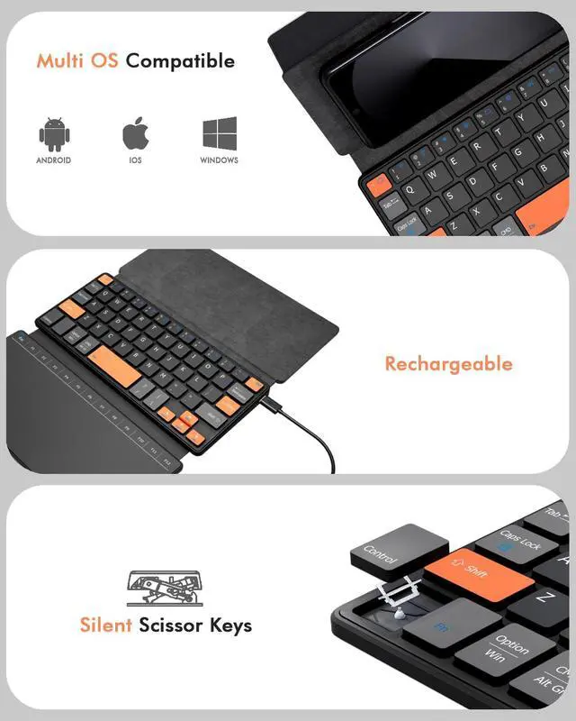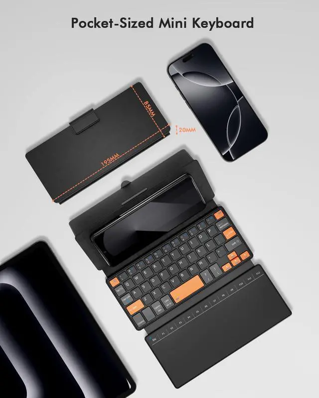 Portable & Flexible Desktop Anywhere: Despite its expanded functionality, it remains highly portable. The built-in adjustable stand securely holds your device at the perfect viewing angle. Its sturdy yet flexible hinge allows it to fold compactly, making it your go-to setup for cafes, libraries, or travel.
