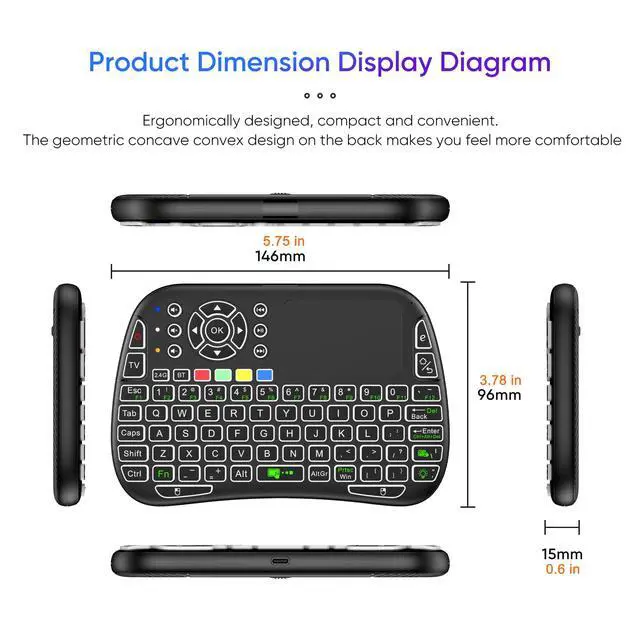 - Wireless RF with USB receiver, plug and play.5 exclusive buttons of IR learning function.