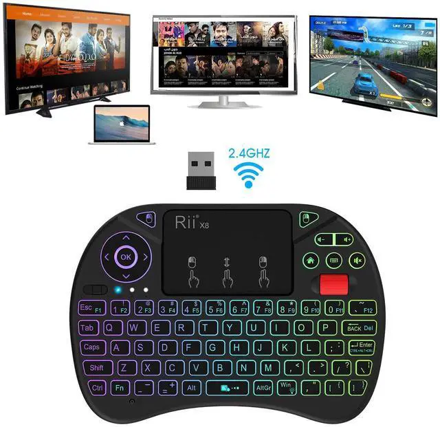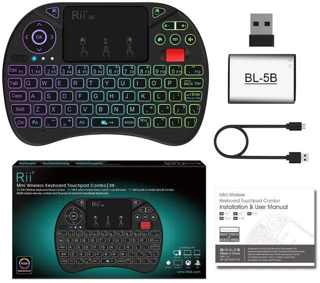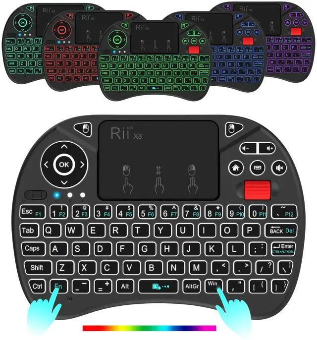 -New Features:This new Rii X8 has some new features than Rii mini i8+ Multifunction: 7-Color RGB Backlit+Multimedia control keys+Wireless Keyboard + Multi Touchpad Mouse + Scroll Wheel,Left and Right Buttons,and PC gaming control keys