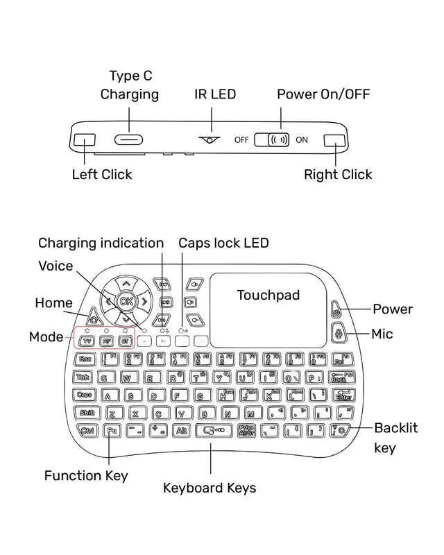 - Align the keyboard's top with the TV remote's top, with a distance of no more than 0.1inThe closer the distance, the easier it is to succeed.