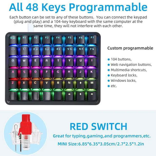 Koolertron Single-handed Programmable Mechanical Keyboard & 48 Macro Keyboard