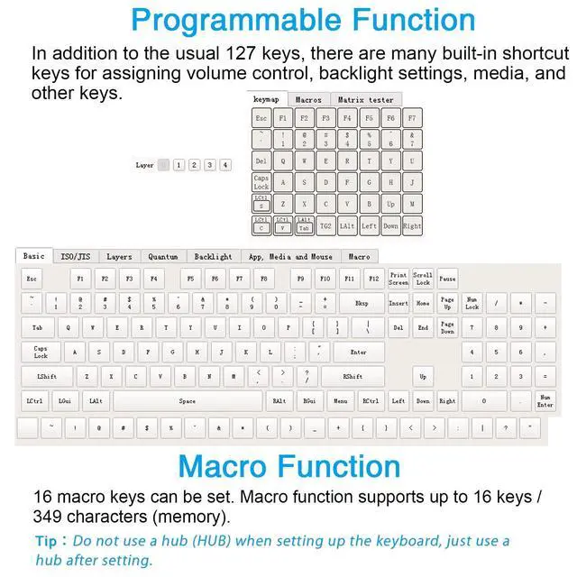 - Customize as you like according to the environment. You can set the 127 keys,web navigation buttons,19 multimedia shortcuts,Windows/keyboard lock etc.