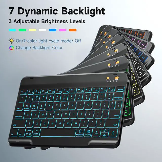 With 7-color backlights and 3 levels of brightness adjustment, the keyboard case can adapt to various environments.In nighttime or low-light conditions, you can adjust it to an appropriate color of light, which effectively relieves visual fatigue and enhances the convenience of use.