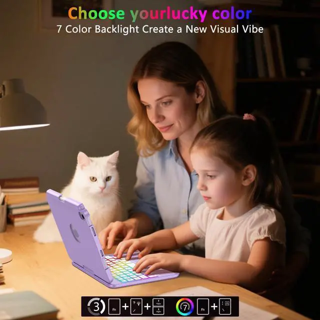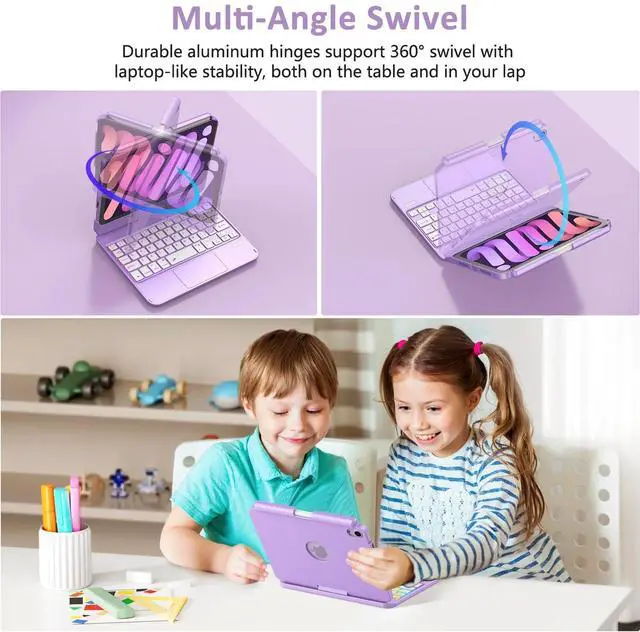 Our Keyboard Case for iPad Mini 7th (A17 Pro) features a 360 swivel hinge between the keyboards that instantly turns your iPad into a laptop, making it easy to share content from multiple angles, take it on the go, and be productive.