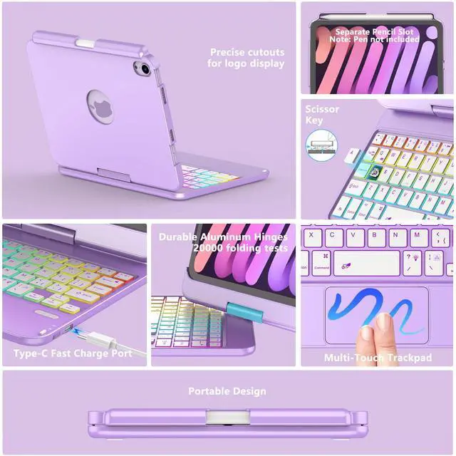 1 x Touch Keyboard Case for iPad Mini 8.3 inch (Stylus and iPad not included), 1 x Type-C USB Cable (No Charger included), 1 x User Manual;