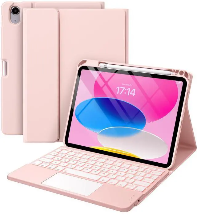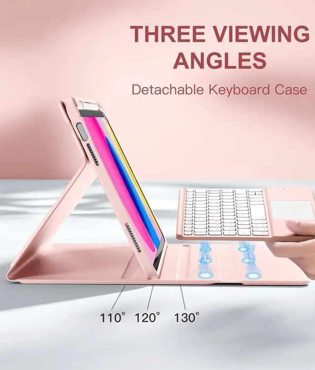 Compatible for iPad 11th 10th Generation Case with Keyboard, Folio Cover with Pencil Holder, Multi-Touch Trackpad, 7 Color Backlit, Detachable Keyboard for iPad (A16) 11th/10th Gen(Light Pink)