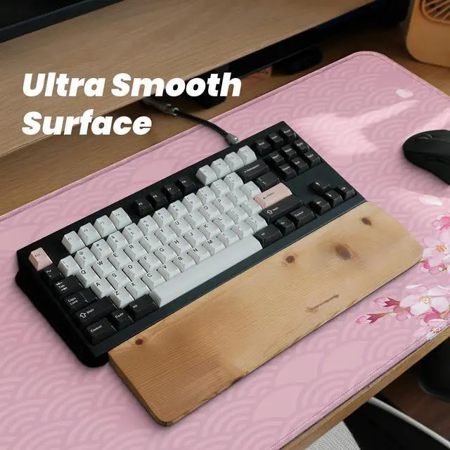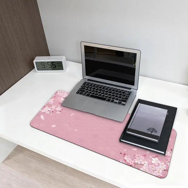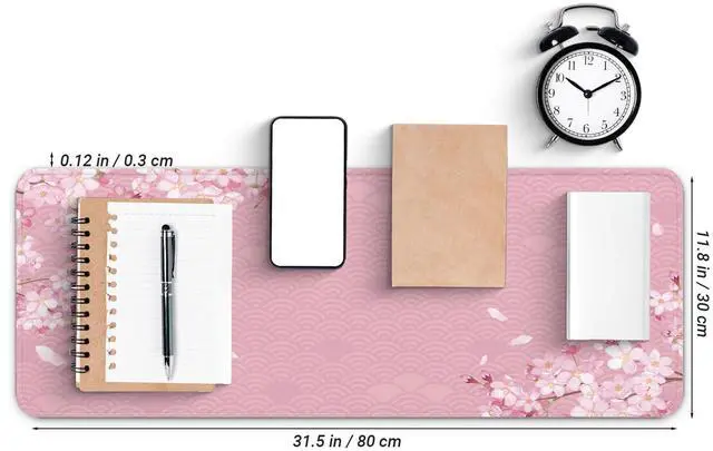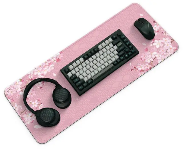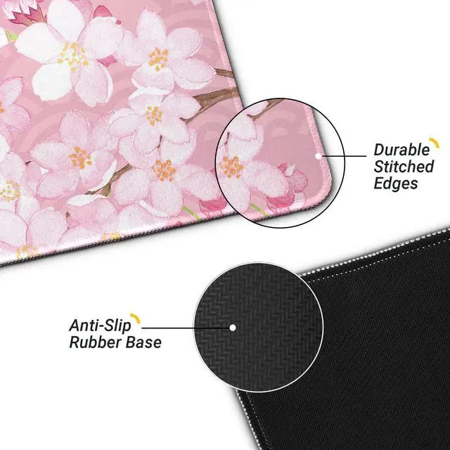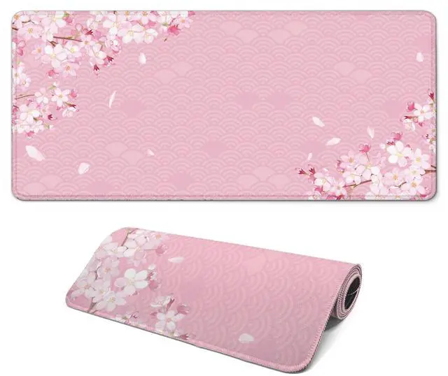 Gaming Mouse Pad with Anti-Slip Rubber Base, Extended Large Computer Mouse Mat with Stitched Edges, Long XL Anime Mousepad for Laptop and Keyboard, 31.5 x 11.8 inch (Pink Cherry Blossom)