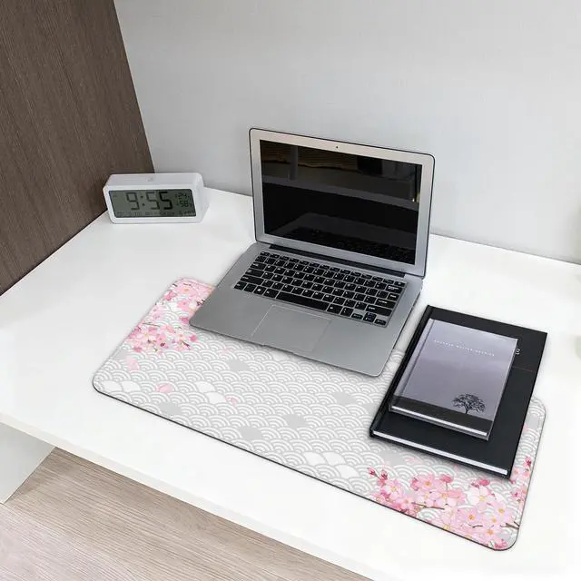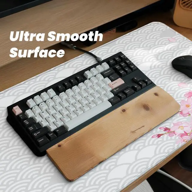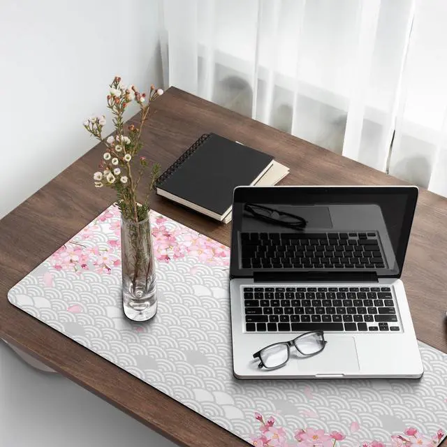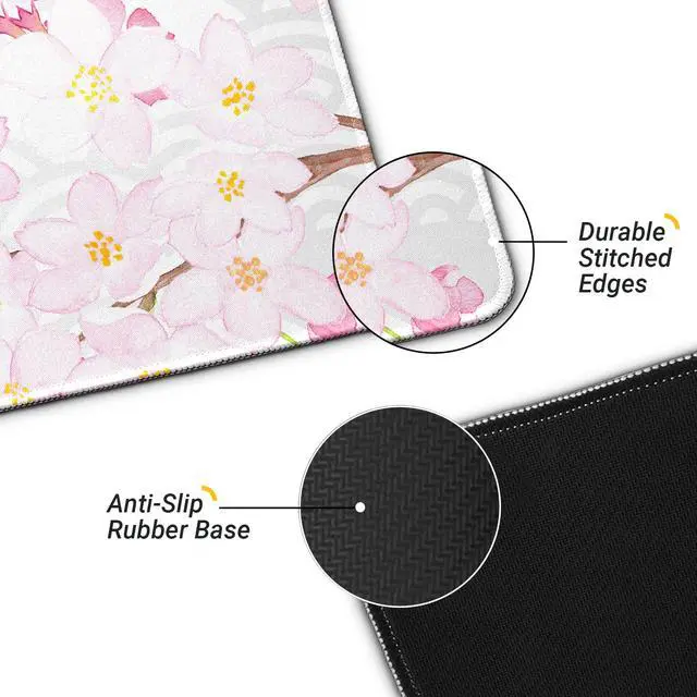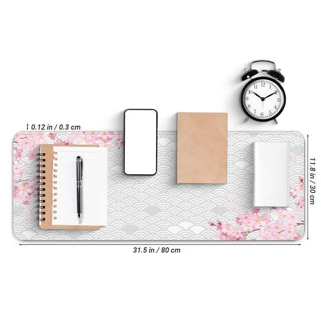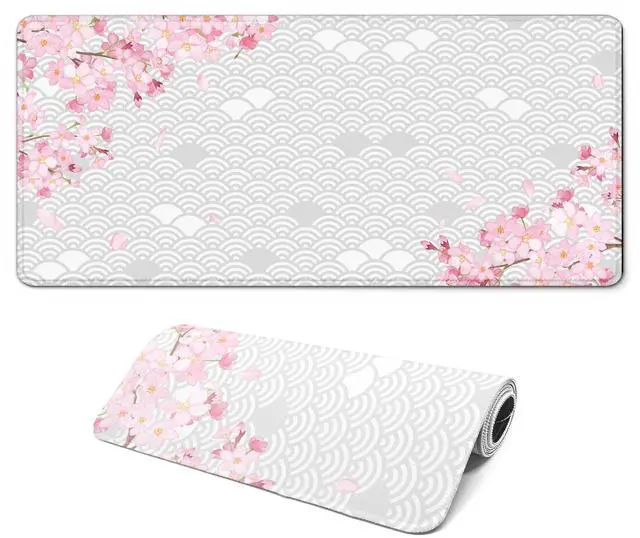 Gaming Mouse Pad with Anti-Slip Rubber Base, Extended Large Computer Mouse Mat with Stitched Edges, Long XL Anime Mousepad for Laptop and Keyboard, 31.5 x 11.8 inch (Grey Cherry Blossom)