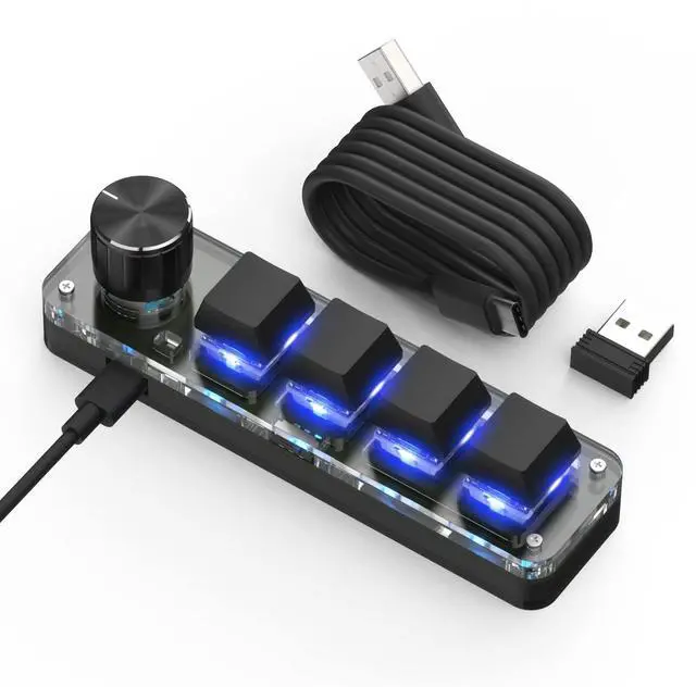 One-Handed Macro Mechanical Keyboard, 4 Keys Gaming Keyboard Fully Programmable for Knobs and Keys, OSU Keypad Hotswap Keypad with RGB for Game Editing PS