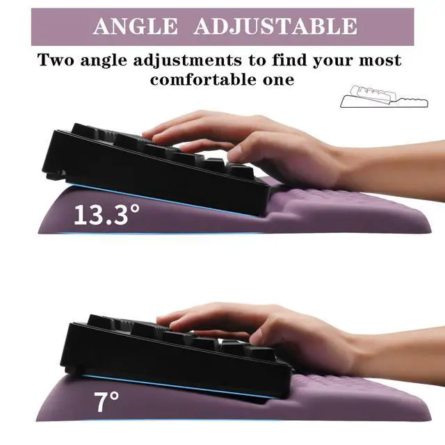 2-Angle Ergonomic Adjustability: This wrist rest for keyboard offers two tilt options (7° & 13.3°) for optimal ergonomic comfort. It can be adjusted to the optimal height according to the typing Angle, allowing the wrists to align naturally, reducing all wrist pain, finger fatigue and joint pressure, making your work easier