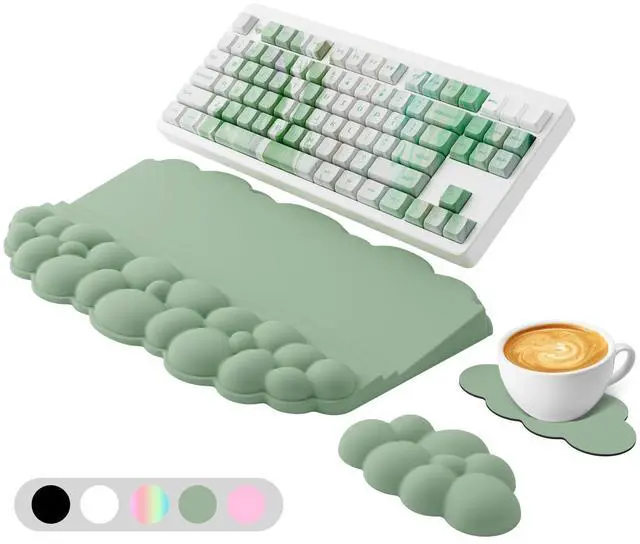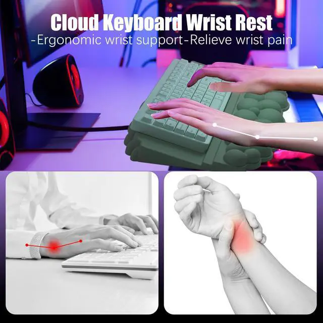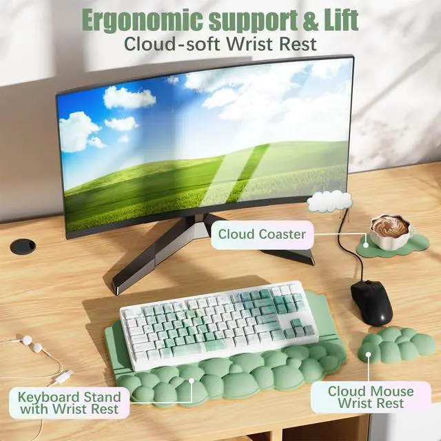 Wrist Rest with Keyboard Stand, Ergonomic Computer Wrist Support Pad, Cloud Keyboard Riser Holder with Wrist Pad, Memory Foam Desk Cushion, Palm Hand Typing for Office Home School-Green