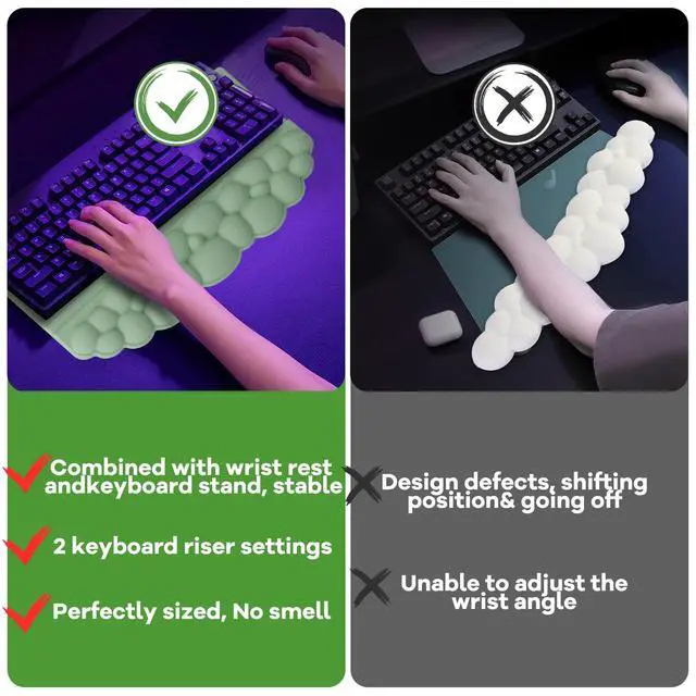 [All-in-One Keyboard Stand Pad and Wrist Rest] This wrist rest for keyboard offers two tilt options (7° & 13.3°) for optimal ergonomic comfort. The angled design reduces strain on your wrists, forearms and elbows, helps treat and prevent carpal tunnel syndromeperfect for long work or gaming sessions
