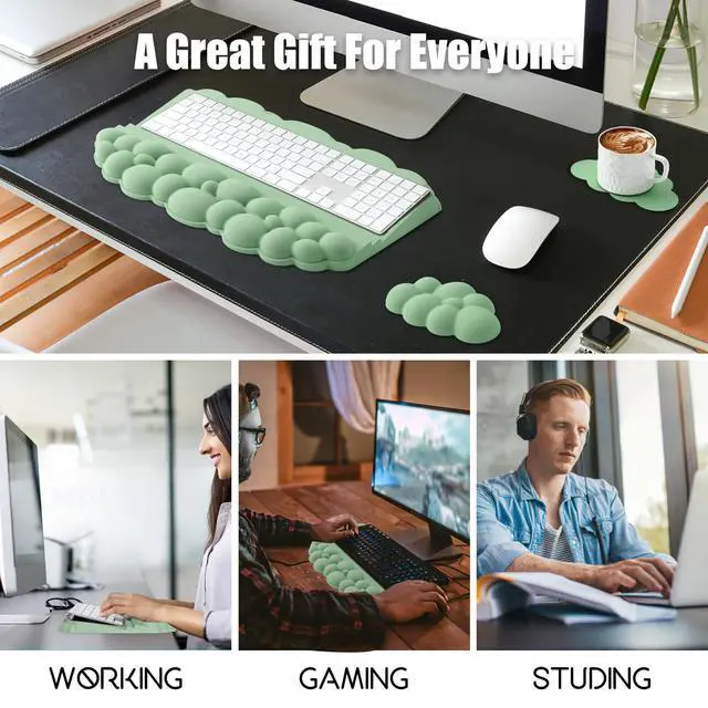 [Adorable Cloud-Shaped Set for a Cozy Workspace] The cloud keyboard wrist rest Includes a keyboard wrist rest, mouse pad, and cup holderall designed in a unique cloud shape for a cute, aesthetic look. Enhances your setup while keeping essentials within reach