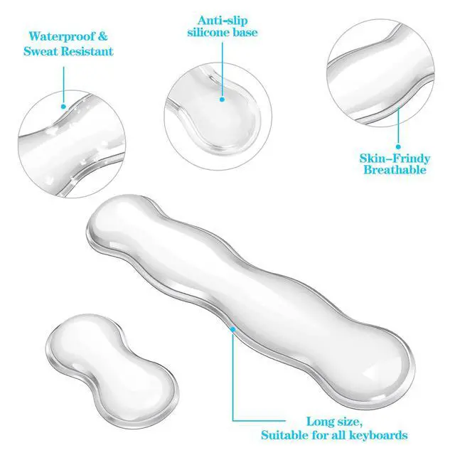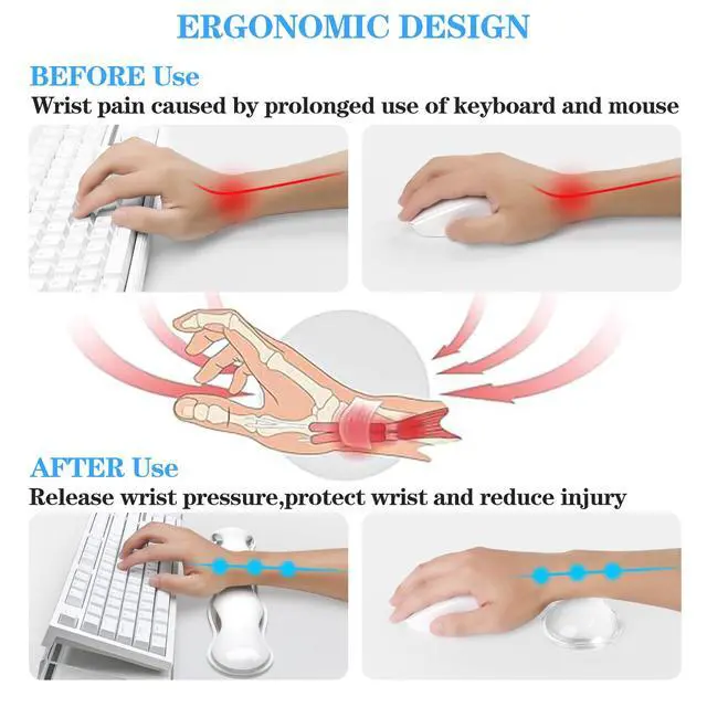 ERGONOMIC DESIGNGel wrist rest set reduces pain by supporting proper wrist positioning and easing strain. Its design is very ergonomic, fits the wrist, is soft and comfortable, and keeps you away from wrist pain