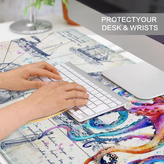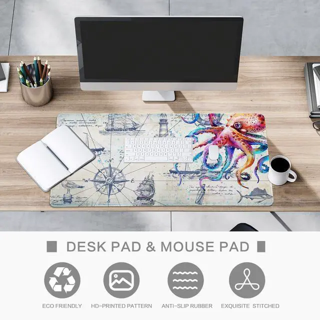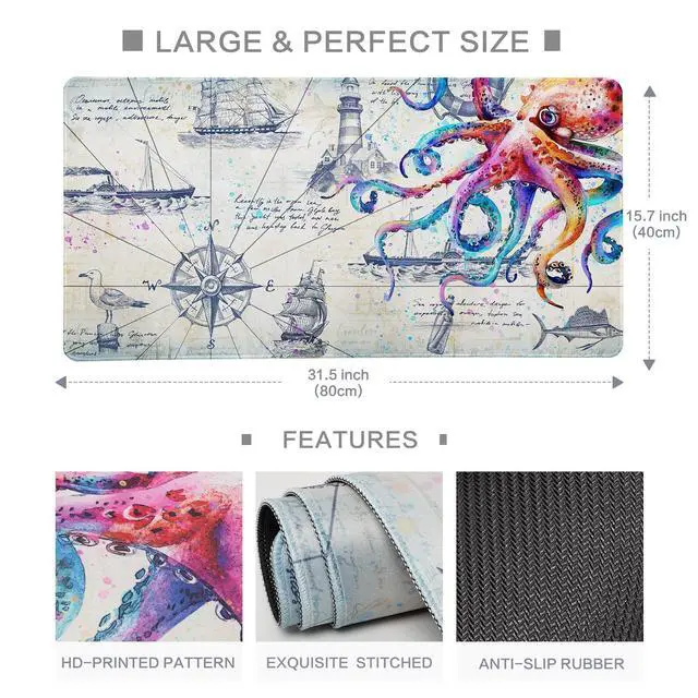 Lokigo Octopus Desk Mat, Grey Large Mouse Pad, XXL Gaming Mouse Pad, Cool Colorful Nautical Octopus Desk Pad, Big Extended Full Size Mouse Pad, Desktop Desk Matt for Keyboard, Laptop & Computer, 31.5 x 15.7 inch