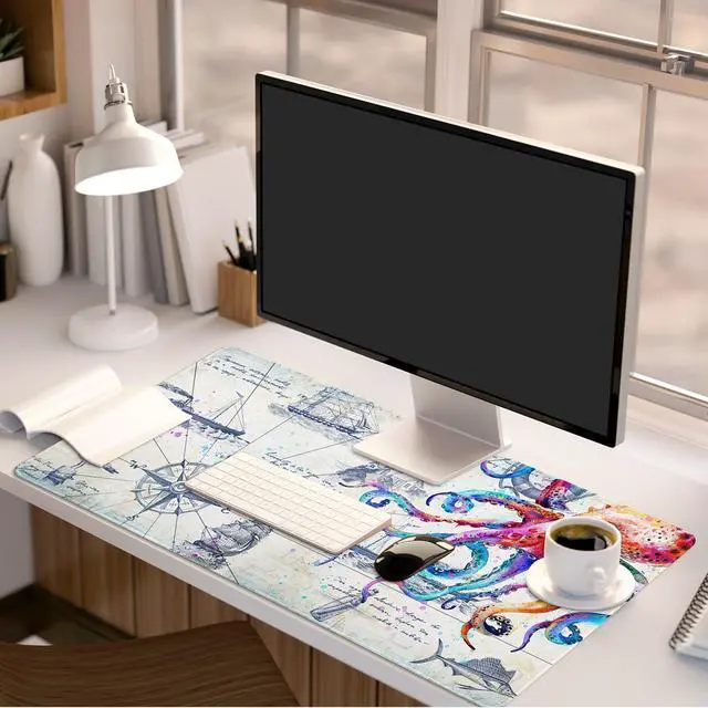 This gray mouse pad gaming is designed by Lokigo professional designers, combines octopus, compass, anchor, lighthouse and ship, unique and stylish. Printed in HD technology, this big mouse pad stays vivid and colorful forever.