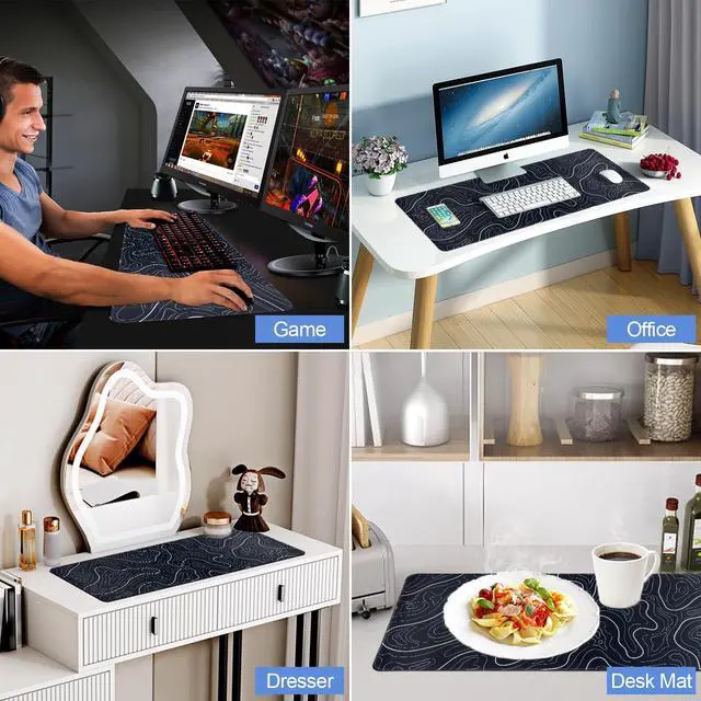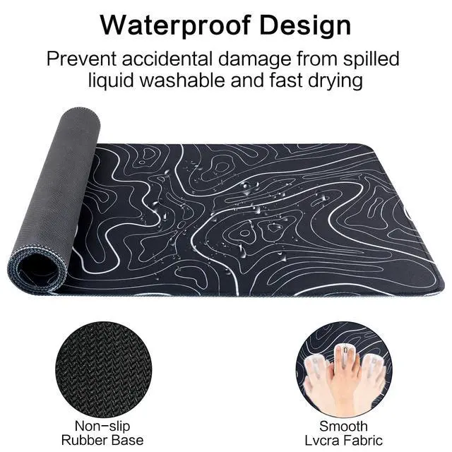 Title: Gaming Mouse Pad - Topographic Map Design, Extended Desk Mat, 31.5 X 11.8 Inch, Non-Slip Base, Water-Resistant, Easy to Clean Introducing the Gaming Mouse Pad, a perfect blend of style, functionality, and durability designed to elevate your gaming or office experience. This topographic map-themed mouse pad brings a unique and captivating aesthetic to your workspace while providing exceptional performance. Crafted with a large 31.5 X 11.8-inch extended size, this desk pad comfortably accommodates both your mouse and keyboard, allowing for smooth and unrestricted movement. The detailed topographic map design adds an adventurous touch, making it not just a practical accessory but also a visually stunning statement piece. Engineered with high-quality materials, the mouse pad ensures optimal glide and precision for your mouse sensor. The non-slip rubber base keeps the mat securely in place, preventing any unwanted slipping during intense gaming sessions or focused work hours. Its water-resistant surface protects against accidental spills, ensuring the longevity of your mouse pad. Cleaning and maintenance are a breeze with this desk mat. Simply wipe it clean with a damp cloth, and it will look as good as new. This feature guarantees that your mouse pad remains in pristine condition, even with daily use. Why choose Our commitment to quality and customer satisfaction sets us apart. We understand the importance of a reliable and stylish mouse pad, which is why we've designed our product to withstand the demands of daily use while adding a touch of character to your setup. Perfect for gamers, professionals, or anyone seeking a unique and functional desk accessory, this mouse pad is suitable for any office environment. Experience the perfect blend of form and function with the Gaming Mouse Pad. Transform your workspace into an adventure with its captivating topographic map design and enjoy unparalleled performance and conv