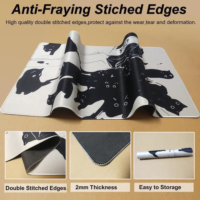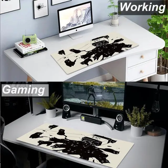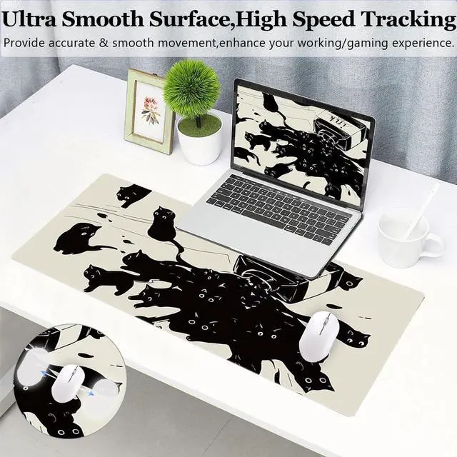 Uniqcasa 1 Pack 31.5x11.8 inch XL Large Gaming Mouse Pad,enhance your gaming/working experience. Specifications: Material: Fabric (Surface) + Rubber (Bottom) Dimension: 31.5 x 11.8inch (80 x 30 cm) Color: Black Ink Cat Superfine Fabric Surface : Covered by a superfine smooth fabric, track your mouse accurately. Easy to be cleaned by wet rag or washed. More durable for long time using. Anti-Slip Rubber Base: This large mouse pad can grip your desk firmly, avoid the random movement, and provide a stable and accurate operation while you are gaming/working. Double Stitched Edges Double stitched edges protect the mouse mat from wear,deformation,fraying.Durable for long time using. Washable Design Prevent the damage from spilled drinks/coffee. Easy to be cleaned by wet towel,and washed for long time using. Best Gift Uniqcasa rubber mouse desk mat fit for both home and office. Ideal for gamers, graphic designers, or anyone who uses a mouse for long sessions. This large gaming mouse pad is both decorative and practical, and can be given as a gift to family, friends or yourself.