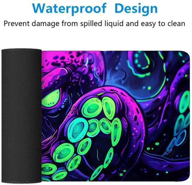 Octopus Desk Mat Gaming Mouse Pad Neon Cthulhu Monster Cool XL Mouse Pad Large Mousepad Extended Laptop Keyboard Mat Gaming Desk Pad Mouse Mat Office Computer Keyboard Laptop Home 31.5" x 11.8"
