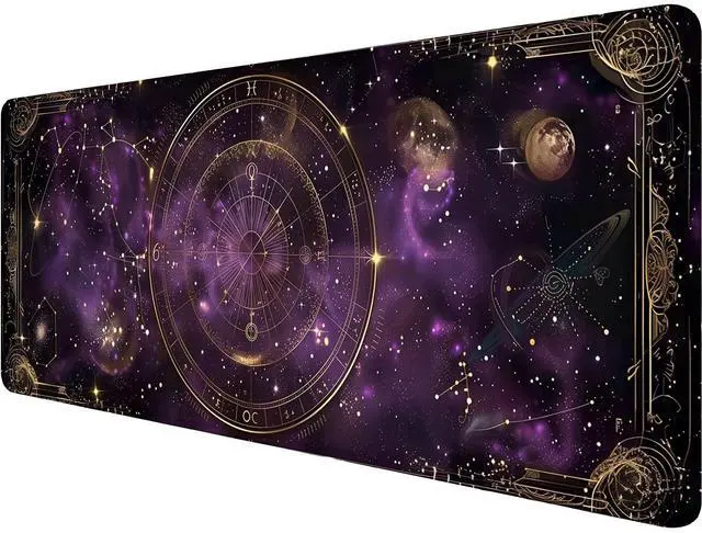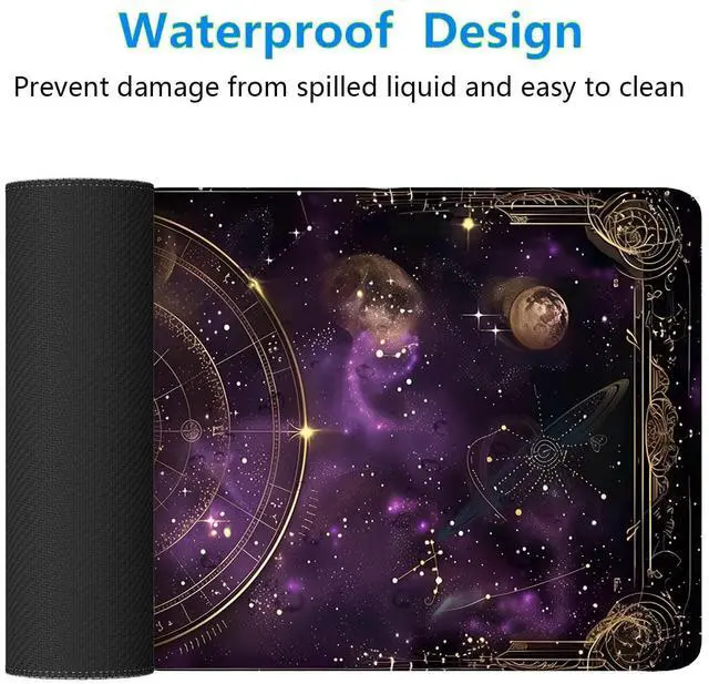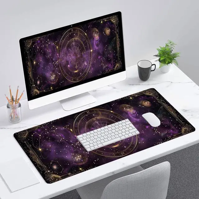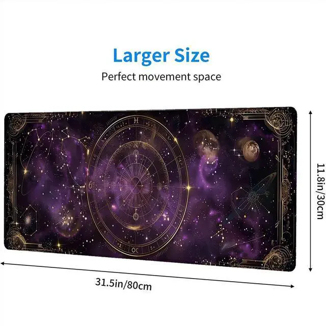 Purple Star Moon Card Desk Pad Mouse Pad Mysterious Galaxy Large Gaming Mouse Mat with Stitched Edges,Non-Slip Waterproof Rubber Base Mous Mat 31.5"x11.8" Office Computer Keyboard Laptop Home